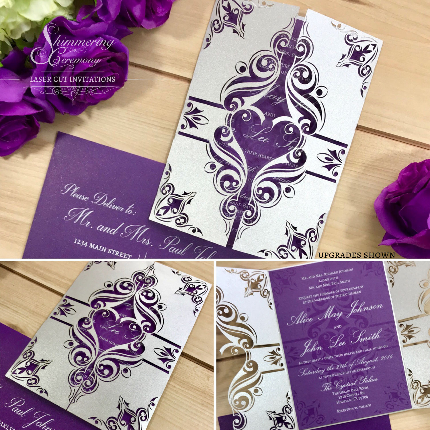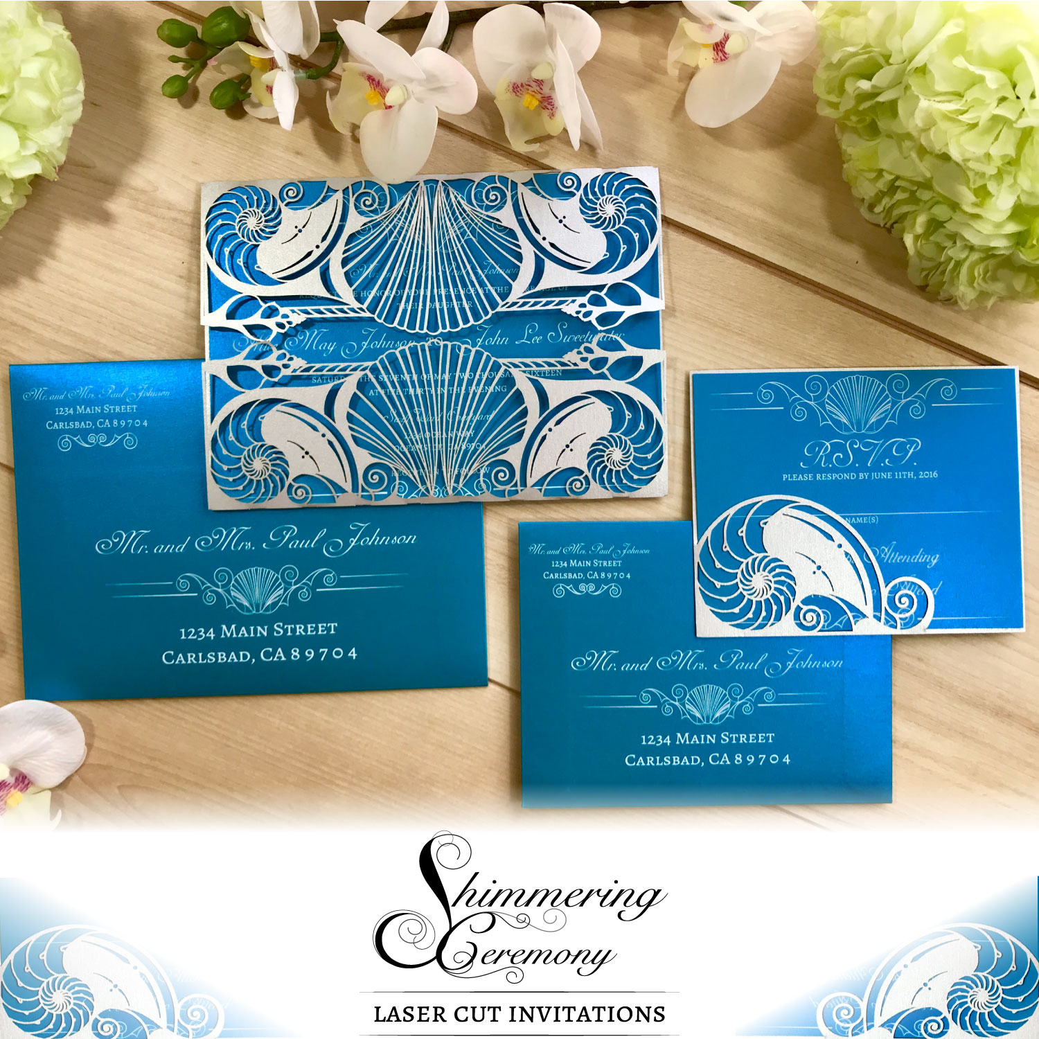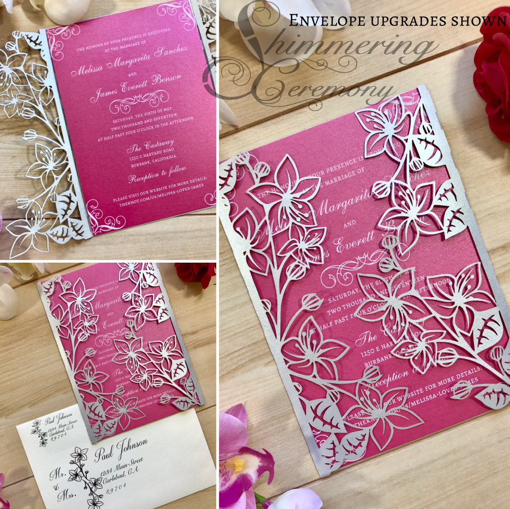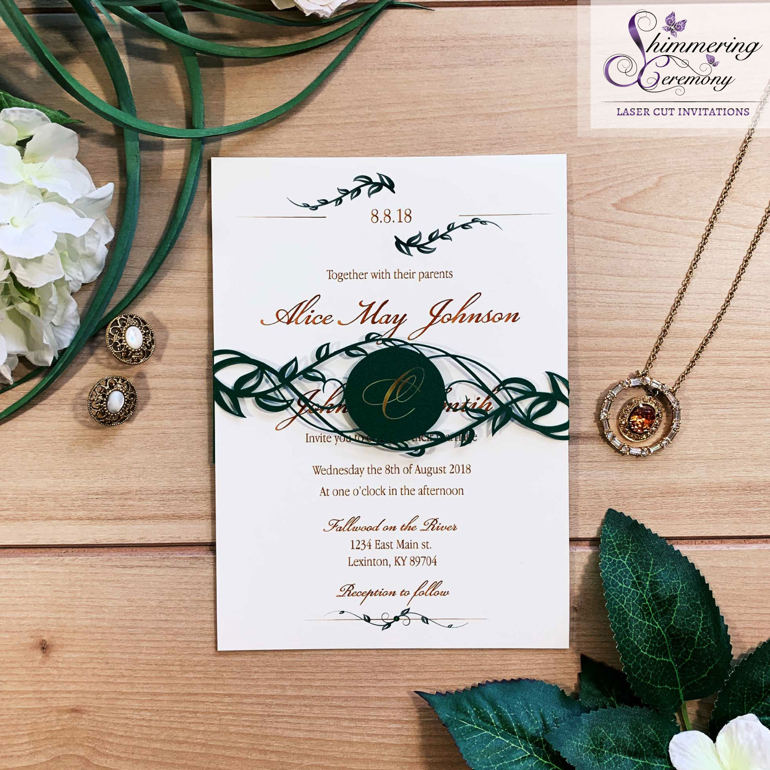 Shimmering Ceremony specializes in creating unique and custom laser cut wedding invitations. Tell your love story with one of our many beautiful styles. Our goal is to make this process easy for you. Contact us with any questions about your invitations or the ordering and design process. If you would like to see the quality of our work, please order a free sample now.