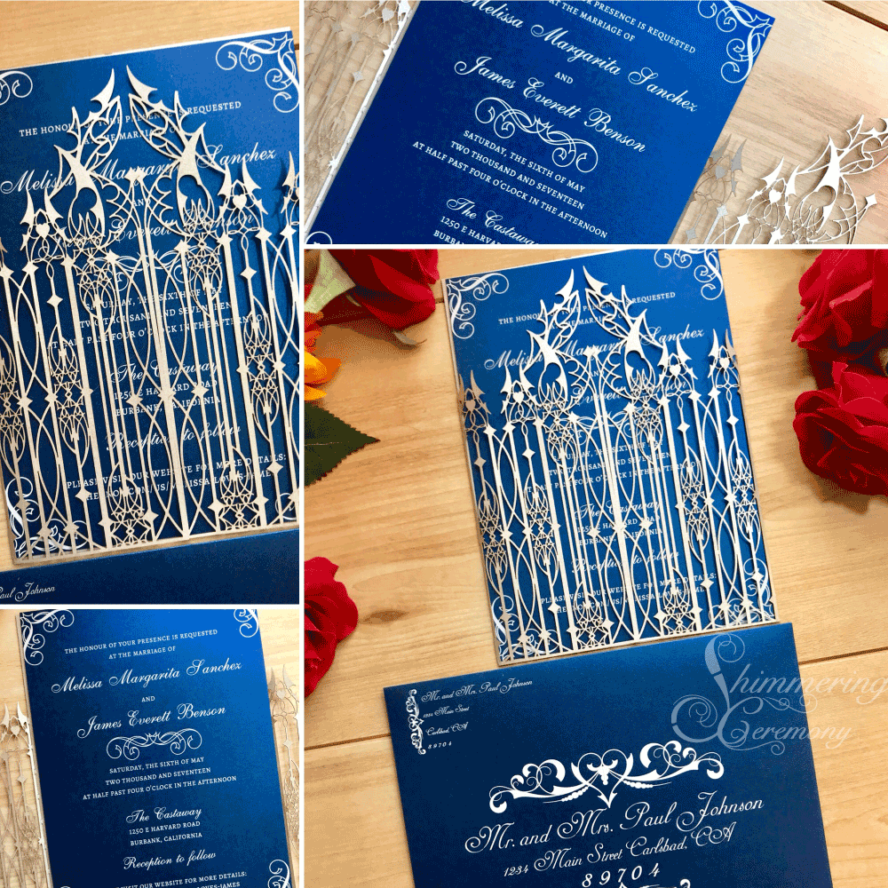Our gothic wedding invitations will stun your guests with their dark elegance. Visit our Gothic Wedding Invitation page for more morbidly romantic options. Choose a one-of-a-kind laser cut wedding invitation for a love story with no earthly match.