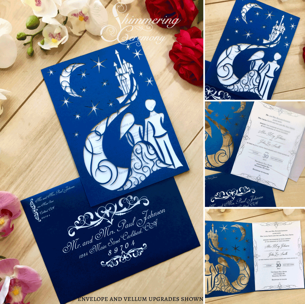 Fairytale wedding invitations are one of our favorites. For even more fairytales, including Aladdin and Beauty and the Beast, visit our Laser Cut Fairytale Wedding Invitations page.